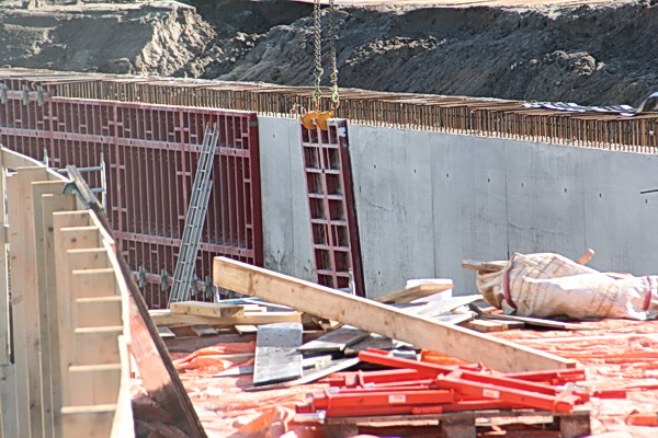 Met de hulp van de super kraan wordt de bekisting aan de binnenkant van moot 2 verwijderd en meteen aangebracht aan de binnenkant van moot 3. De wanden van moot 3 komen donderdag aanstaande aan de beurt wat beton storten betreft.