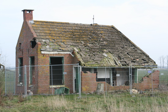 Via het betonpad en de Spanjaardsdijk Noord op de Batavus naar het Van Starkenborghkanaal. De bouwval op het kruispunt met het fietspad wacht geduldig op de dingen die gaan komen, o.a. de eerstvolgende storm….