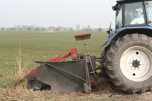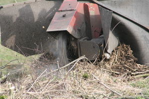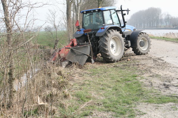 Intussen gaat het seizoenwerk ook door, voor wat betreft het onderhoud van de bermen. Het groen is danig gesnoeid, hier worden de achterblijvende wortelstompen als het ware weggeslepen….