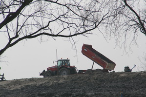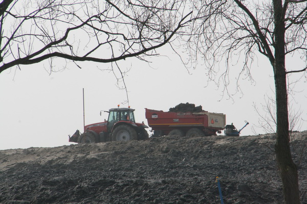 Grondaanvoer, het gaat maar door, ook aan de zuidkant. Links de auto van Wiertsema & Partners, dus er wordt ook nauwkeurig gemeten….
