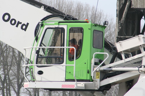 De kraanmachinist van Martens en Van Oord is nog net te zien in zijn cabine… Wat heeft die man al een grond verplaatst….