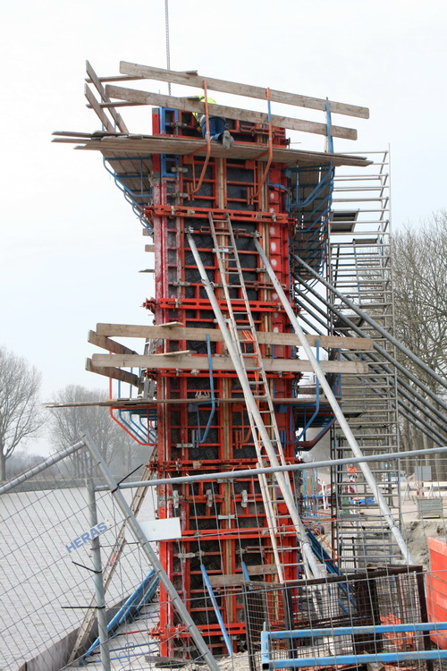 Hier wordt nog steeds gewerkt aan de machtige noordelijke pijler. De bekisting moet natuurlijk geen enkel mankement vertonen. Hoe ver de wapening is???! Eind volgende week komt het beton!