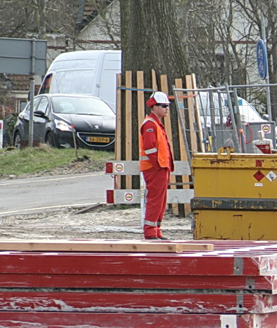 Moot 4 ligt nog vol spullen, maar die kunnen snel genoeg worden verwijderd. Op de achtergrond een ‘werkloze’ super kraanmachinist die naar ongewone drukte op de N355 kijkt. Het lijkt me niet de vertrouwde gestalte van Bertus… Een ‘nieuwe’?
