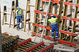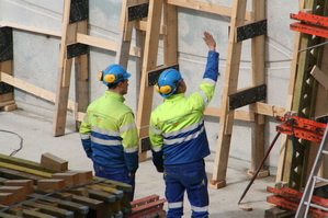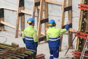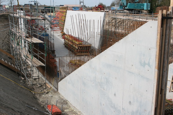Tussendoorkijk richting rotonde, een woud van staaldraad! Er valt nog veel te vlechten en beton is er ook nog nodig in de komende weken….