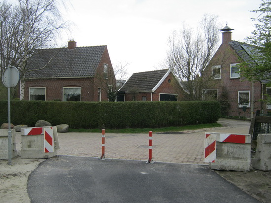 De anti-sluiproute-maatregel in beeld, aan de westkant van de Schippersstraat…. Wat de bushalte betreft, dat blijkt geen voorziening waar de Provincie over gaat, ik moet bij de gemeente Zuidhorn zijn, die regelt dit… (Maar wanneer???!)
