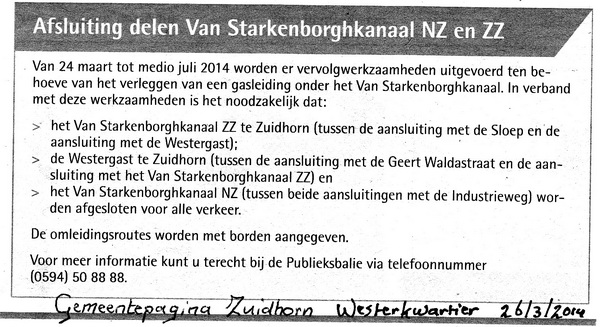 Nu heeft ook de gemeente Zuidhorn het stilzwijgen doorbroken. Op de Zuidhorner gemeentepagina van “Westerkwartier” (26 maart 2014) stond de volgende informatie: