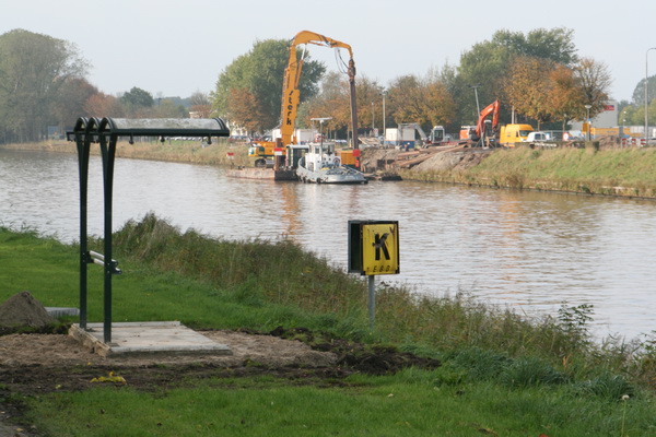 Werkzaamheden aan de noordkant van het kanaal op de plek waar in oktober 2013 de nieuwe buizen werden verzonken. Wanneer de geconstateerde beschadigingen aan de nieuwe buizen zijn ontstaan, en hoe dat is gebeurd, is niet met zekerheid te zeggen…. Eens zien wat er nu verder gaat gebeuren…. De kanaalweg blijft nog wel afgesloten tot de komende bouwvak, is de prognose.