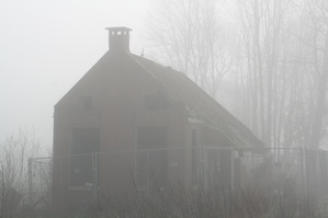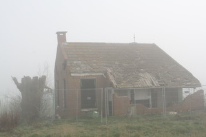 De bouwval op de hoek van Spanjaardsdijk en kanaalweg. De mist kan de verloedering niet verhullen…