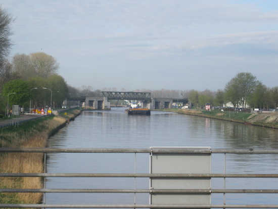 Nadering duwboot vanuit het westen… De brug ging vervolgens probleemloos omhoog. Wordt het scheepvaartverkeer iets meer ‘samengeklonterd’ doorgelaten??!