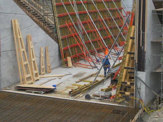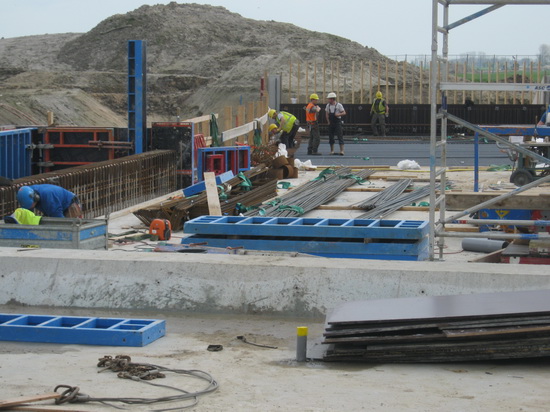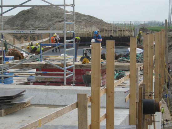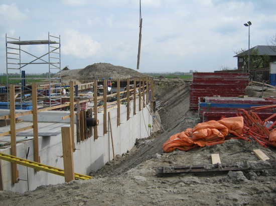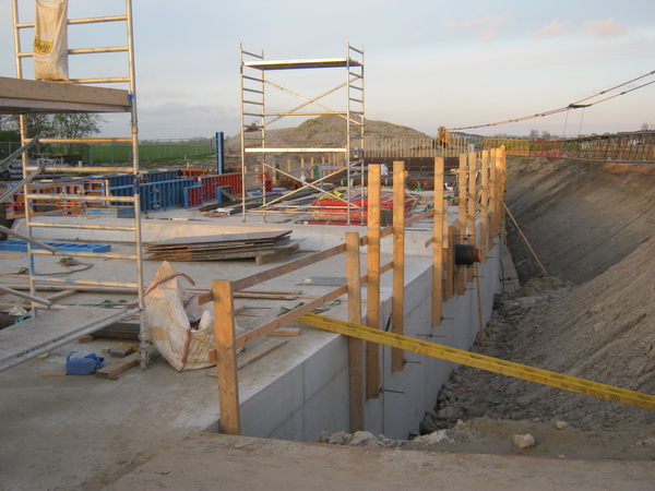 Links wordt nog gewerkt aan de opbouw van de pompkelder. Daarvoor geldt dus hetzelfde: Komende donderdag staan de betonwagens en de betonpomp op de stoep!