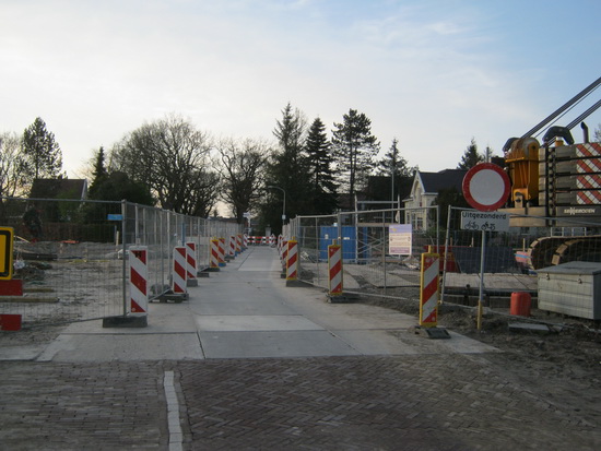 ’s Avonds nog eens tegen zonsondergang de ‘tunnelroute’. Hier de versmalde noodweg: Wel voor fietsers en wandelaars, niet voor snelverkeer. (Al hadden nog lang niet alle chauffeurs dat in de gaten… Of wilden ze dat gewoon niet??! Filosofie: Regels? Alleen als er politie te zien is…)