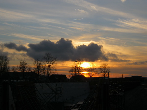 Opvallend avondlicht over het oostelijke deel van de tunnel. De giek van de reuzen kraan is gestreken… Weekendrust!