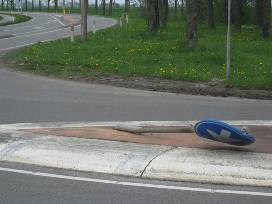 Niet iedereen is blijkbaar zo gelukkig met (of gelukkig bij…) de tijdelijke route via de Langestraat Noord. Zo te zien is hiervoor (op de vluchtheuvel voor de aansluiting op de N355) geen fietser verantwoordelijk…..