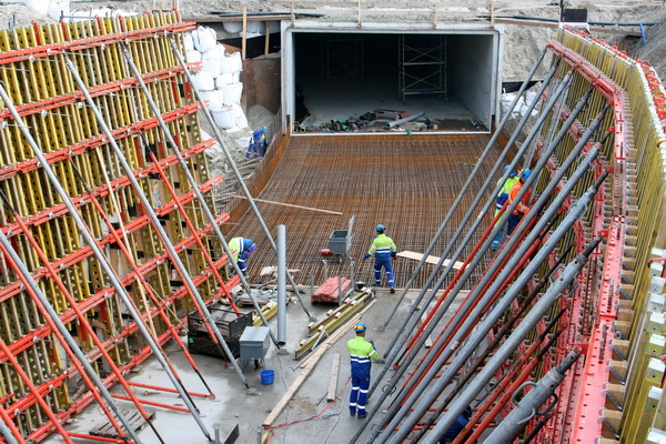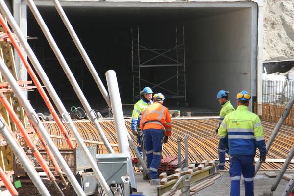 (Zo lang daarbij een lach de gezichten siert, werkt het positief! Iets anders is dat sommige zwart-wit-denkers van mening zijn dat er alleen maar wordt gewerkt, als ik sta te kieken…. Dat is overdreven! De GMB-bouwwereld op zijn kop! Zo vaak ben ik nou ook weer niet bij de tunnel, dan waren de vorderingen lang niet zo opvallend geweest…)