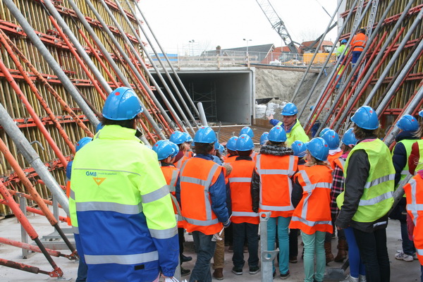 Beneden op de tunnelvloer, moot 6, geeft Janko Haaksema nog enige uitleg over de tunnelbouw. Toch een voorrecht, ook voor deze kinderen (al beseffen ze dat niet eens zo zeer), dat ze tot de eerste ‘burgers’ behoren die door een deel van de tunnel hebben gelopen…..
