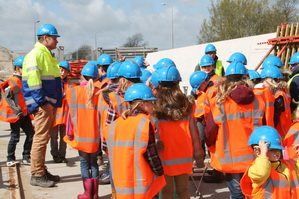 Nu eerst verder met de beelden van afgelopen maandagmiddag 14 april, toen groep 6 van de GBS “De Brug” uit Zuidhorn een bezoek bracht aan GMB-gebouw en tunnelterrein. (Voor de nieuwe brug was helaas geen tijd meer):