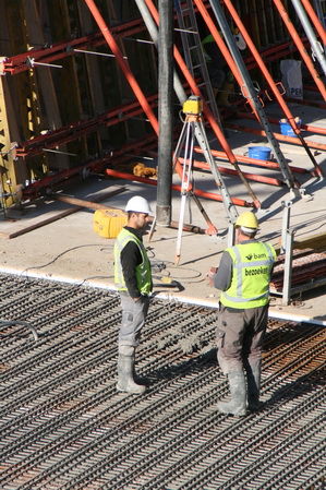 Ruim een uur later, even over half elf, ben ik terug bij het tunnelgebeuren. Dan wordt er volop gestort en is een deel van de gewapende vloer al ‘vergrijsd’…