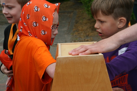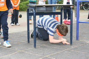Links een soort “voelkist”, rechts een hindernisbaan voor geblinddoekten… (Wat had ik vroeger de pest aan deze spelletjes…)