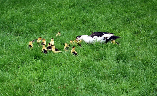 Wat wel blij maakt is mijn eend met 14 kuikentjes.