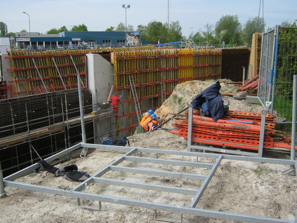 Vanmiddag nog even op de Batavus naar de noordelijke brugbouwput geweest, waar geheide boomstammetjes worden onthoofd en toegedekt met zand, later beton. Voor de tijdelijke platforms voor de telescoopkranen in week 21, als die lange liggers hun plek krijgen op de pijlers. En daarna worden de platforms weer weggehaald… Kosten? Eigenlijk kun je, zoals GMB’er Henk Tippe terecht naar voren bracht, verbaasd zijn over het feit dat het niet meer vergt dan die 20 miljoen, als je ziet wat er allemaal gebeurt, inclusief het baggeren, bocht verruimen, brug bouwen, tunnel realiseren, weg verleggen, verkeersmaatregelen nemen, etc.