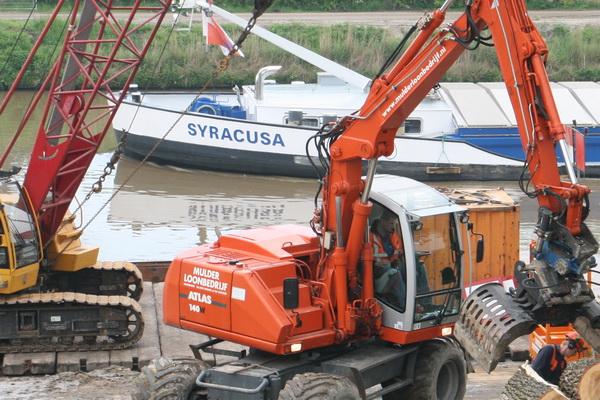 De “Syracusa” op 30 april, varend richting Gaarkeuken. (Mooi, dat spiegelbeeld in het kanaalwater!)