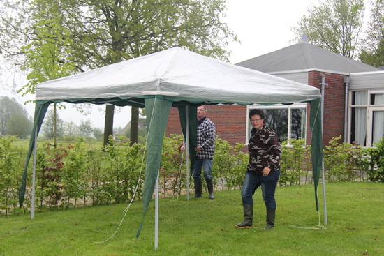 Vroeg naar het Dörpsstee-terrein! Twee redenen: 1. Boeiend om te zien hoe een dergelijke activiteit wordt opgezet en in elkaar zit; 2. Het was nog droog….