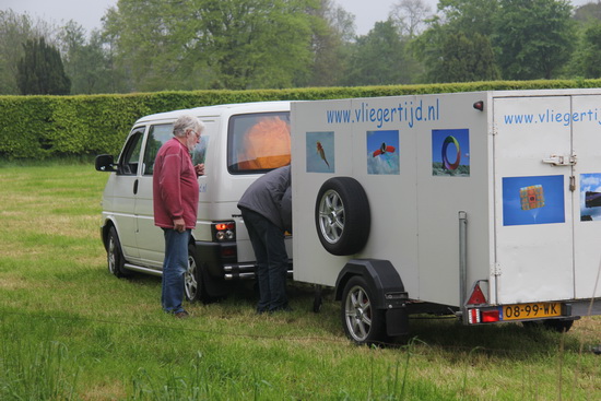 De vliegerclub op zijn bestemming, de aanhanger wordt afgekoppeld!
