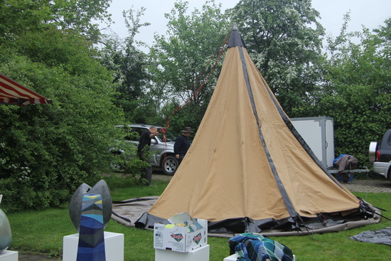 Aha, hier is blijkbaar de mini-camping van Dorpsbelangen! De tent verrijst, langzaam maar zeker! Tentzending? Die maakten vroeger gebruik van veel grotere tenten… Als kind gingen we wel eens langs, voor de plaatjes….Wordt dit een rustplek, ter bezinning?!