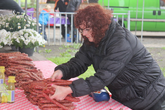 Verderop, tussen de bloeiende planten en het fruit, de droge worstenparade! Voldoende mondvoorraad voor de liefhebbers!