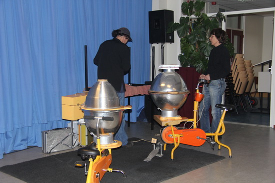 Even naar binnen in de grote zaal van de Dörpsstee waar alles in gereedheid wordt gebracht voor een voorstelling van het circus PomPom!