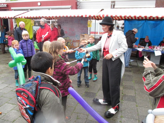 Dit doet het altijd goed, een clownsact, ook in de regen….