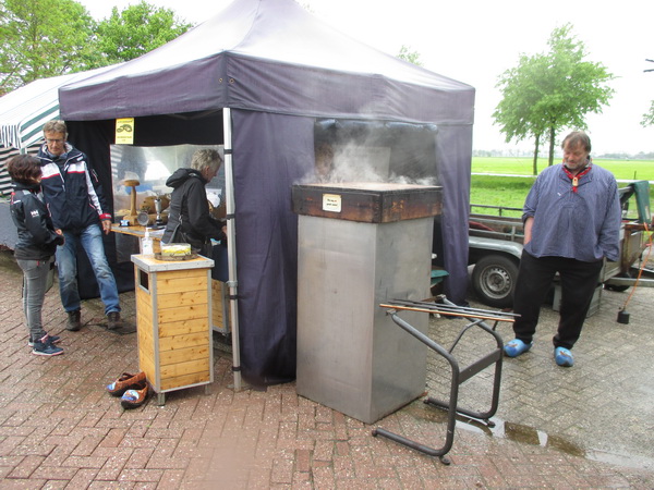 Friese Dikkie bij de palingrokerij, geeft sfeer, maar een echte publiekstrekker werd ie niet, onder deze natte omstandigheden…