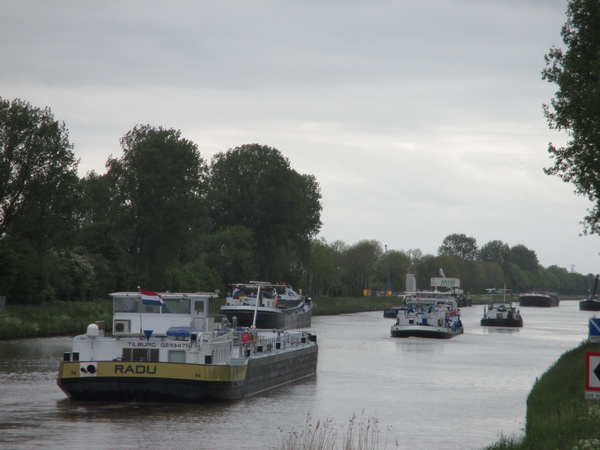 Vanmorgen, een uur of kwart over 9, onderweg naar de grootgrutter. Frisjes, inderdaad. Opvallend veel schepen in dit gedeelte tussen oude en nieuwe brug…. Waaronder de “Radu”, die aan bakboordzijde wordt gepasseerd door de achteruit varende, lege ???? (Het zou de “Beaufort” kunnen zijn….)