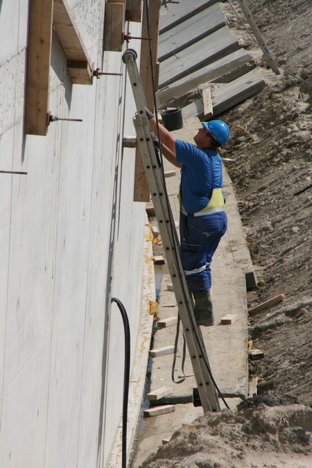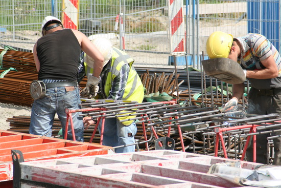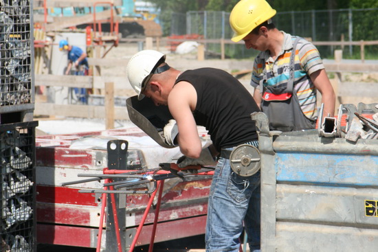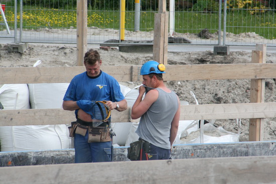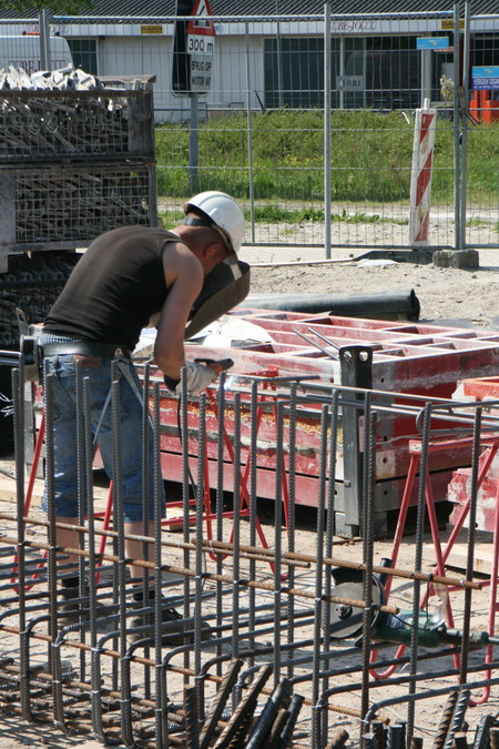 Wapenwerk op de voorgrond en deze specialist van het staaldraad is hier met laswerk bezig, neem ik aan. Het is een specialisme, dat is duidelijk!