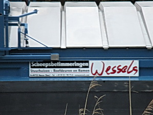 Een schip van ondernemer Wessels die zich bezig houdt met scheepsbetimmeringen. De maximale lengte van 110 meter en breedte bijna 11½ meter. Ik dacht dat er ook al schepen van 12½ meter op dit kanaal mochten varen, maar dat is nog toekomstmuziek. Moet eerst de hele vaarweg van Lemmer tot Delfzijl zijn ‘verruimd’.