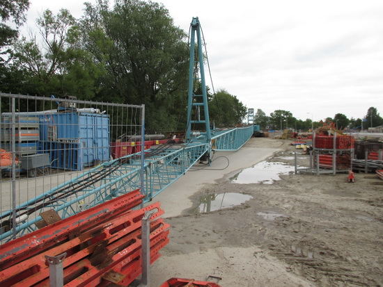 De meterslange giek van de Zwagerman-hijskraan is neergelegd langs het tunnelcomplex, op de oude N355-rijbaan. Kan maandag zo worden gedemonteerd en weggebracht. Heeft machinist Louis ook zijn laatste werkdag in Noordhorn gehad…