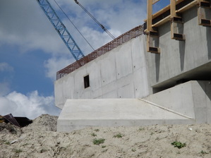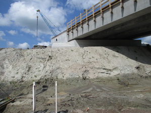 De landhoofden aan de noordkant, waar zo te zien nog wel wat beton zal worden gebruikt. Blootliggende wapening, nee, dat blijft vast niet zo….