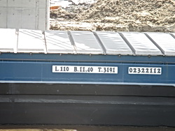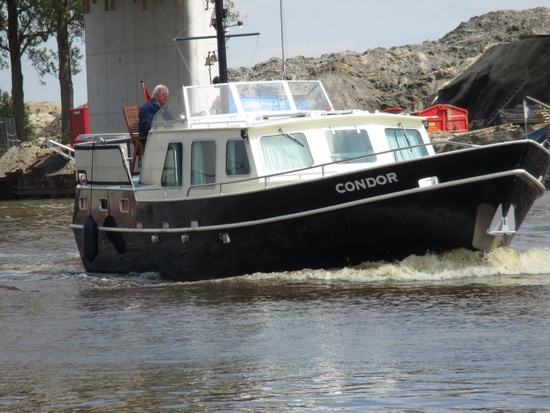De “Impresa” komt vanuit het westen aan glijden…. Ook een grote, zie de gegevens…. Ben benieuwd wanneer de vaarweg Lemmer-Delfzijl voor nog grotere schepen wordt vrijgegeven…
