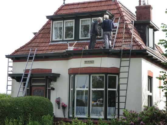 Inbegrepen bij het Project Noord/Zuidhorn is ook het isoleren van het huis van de Wieringa’s, “Wiandi” (Willem – Annie- Dirk?) Willem assisteert de vakman van Hoekstra Bouw.