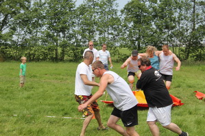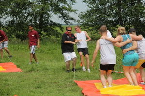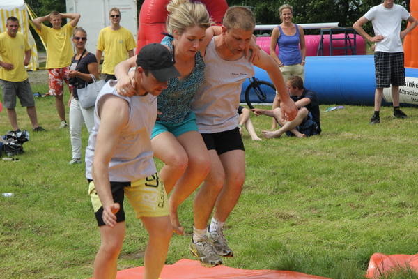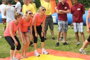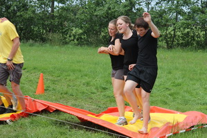 Spel nummer 3: De vloerkledenrace! Op de matten nemen drie teamleden plaats, drie andere gaan de mat met mensen naar de finish trekken, zo snel mogelijk. Zou dit dan het moeilijkste onderdeel zijn?