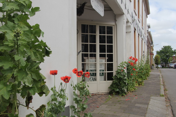 De papavers en stokrozen verfraaien het aangezicht van kostuummuseum “De Gouden Leeuw”.