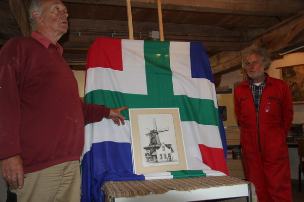 Een vroeger werk van molen+molenhuis door Frans Hage had al eerder zijn weg naar de molen gevonden. Een sprekende Klaas Hekker en een zwijgende Drewe Schouten, als treffende omlijsting.