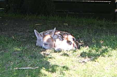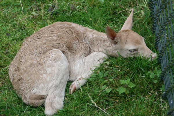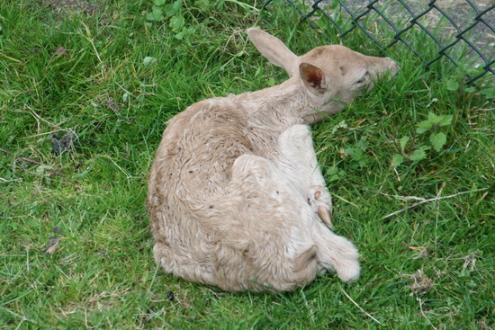 Vanavond kwam het bericht: Een tweede hertje geboren! In de schuur, maar hier dus al op eigen poten naar deze plek bij de afrastering gelopen… (Vanavond plm. acht uur, half negen….) Vermoeiende bezigheid, en dan wil je eerst wel een poos liggen…. (Wie er ook langs komen…)