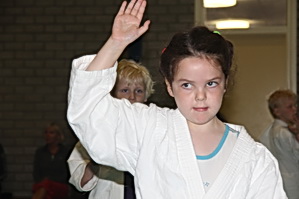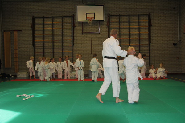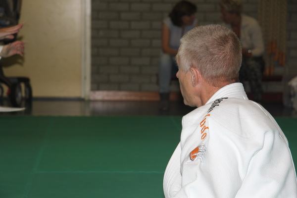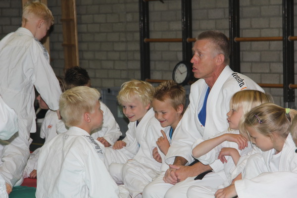 Een rustige, duidelijke judoleraar die de sfeer van zo’n laatste les goed aanvoelde! Een prestatie om de royale groep van ruim twintig meisjes en jongens toch bij de les te houden….