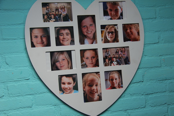 Het fraaie fotobord in de hal, niet voor niets hartvormig. De oude groep 8, van vorig jaar (verzekerde me insider Margaretha!). Nee, ik ken de meeste namen niet, ik ben al lang buiten Molshoopbeeld geraakt, voortschrijdende tijd, nietwaar….