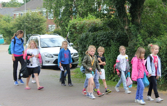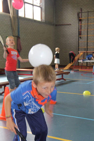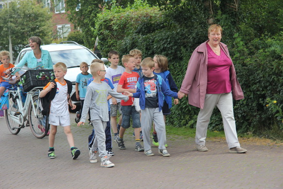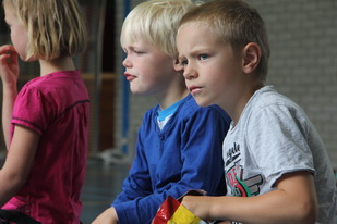 Als ik even heb gekeken of ons huis er nog stond en of het toilet nog te gebruiken was, kom ik juf Jenny tegen met de kinderen van groep 3 /4, samen met een ouder en bewegingsjuf Nathalie. Ze zijn op weg naar het sportgebouw. Even pauze, inclusief een traktatie. En dan gaan deze kinderen in de gymzaal met het circuit bezig en mogen de jongsten van 1/2 mee naar het dorpshuis, bewegen op muziek. (Je moet bij sommige kinderen het woord “dansen” vermijden….)