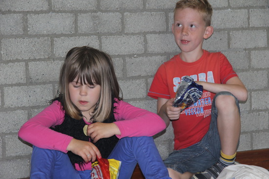 In de gymzaal wordt getrakteerd! Zakjes chips…. En nou maar hopen dat de gewenste smaak wordt ‘geleverd’….