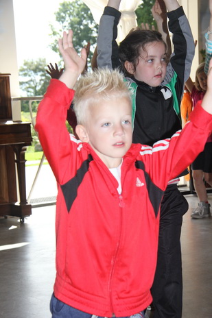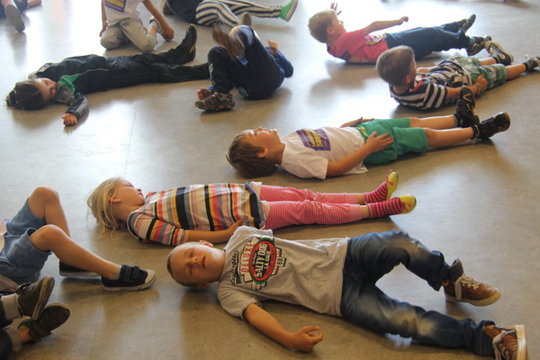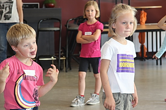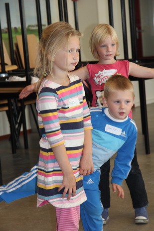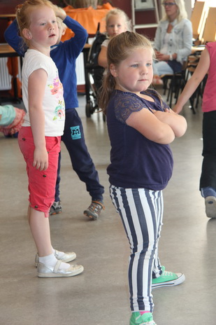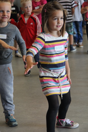 Voordoen! Zeker bij jonge kinderen (maar niet alleen bij hen…) een prima uitgangspunt. Juf Nathalie gaat voor, de kinderen volgen, het liefst zo dicht mogelijk achter juf!