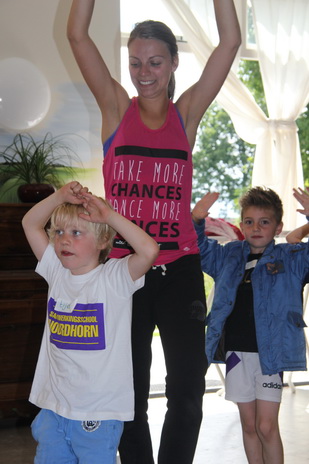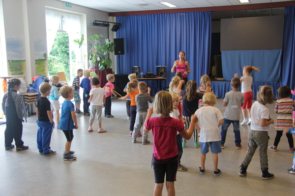 Juf Nathalie moet aan het eind van de morgen wel bekaf zijn….. (Of is dat een onderschatting van haar conditie?!)