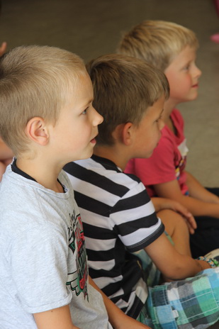 Instructie! Juf heeft de volle aandacht en de zon schijnt door de open zijdeuren naar binnen, toverachtig licht!